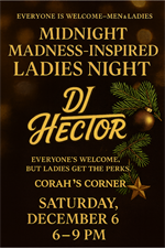 Join us on Saturday, December 6 from 6–9 PM for DJ Hector, festive cocktails, foodie specials, and all the holiday energy you love at the Corner Bar.